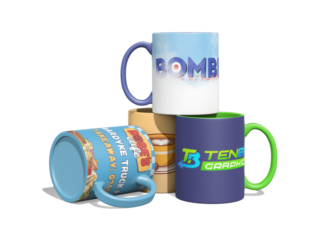 Enhance your brand visibility with custom printed mugs that deliver lasting marketing impact. We offer comprehensive printing on various mug styles. Our high-quality printing process ensures vibrant colours and sharp logo reproduction that withstand daily use and frequent washing.